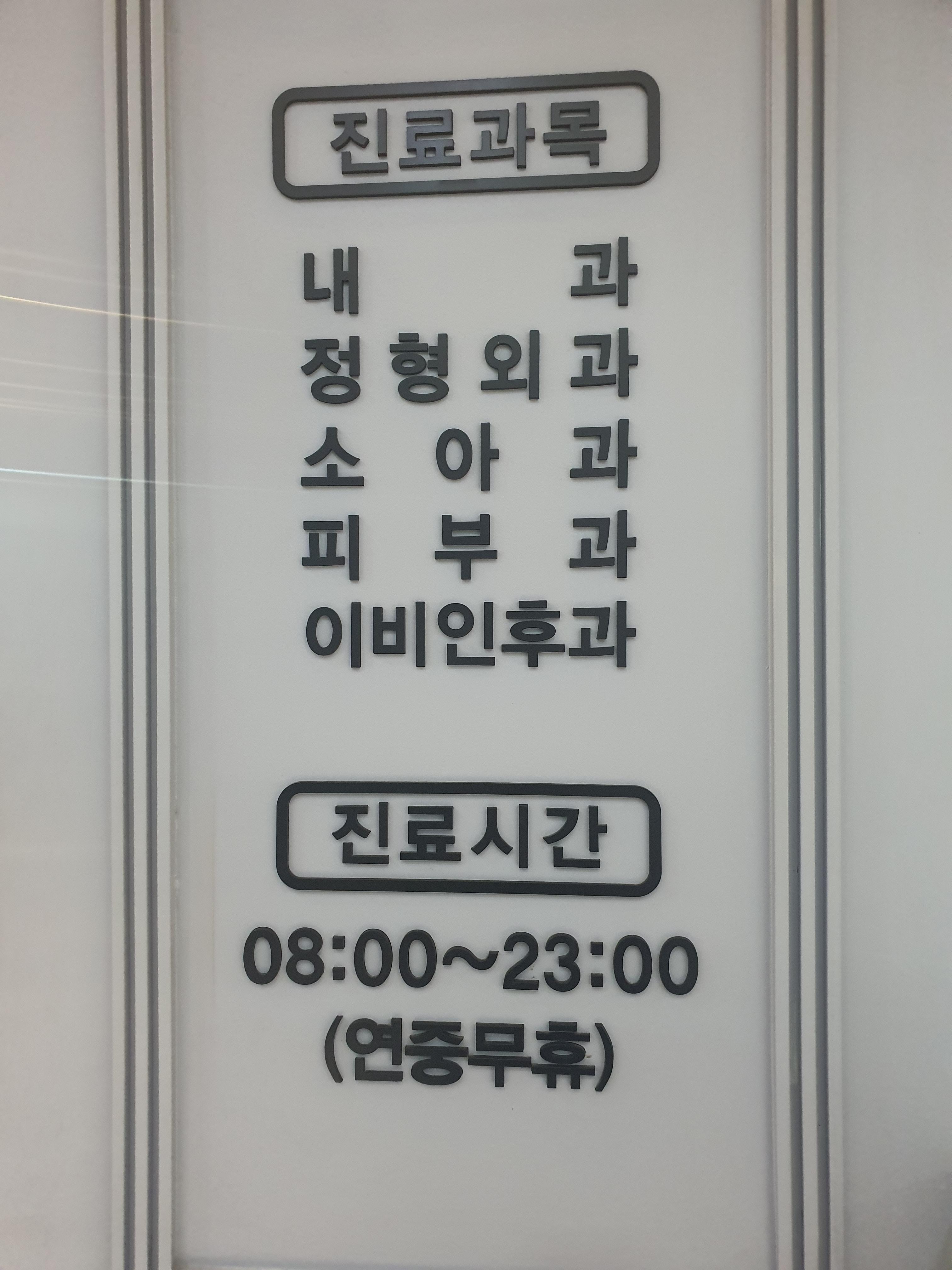 · 진료시간 : 평일 8:00~21:00 / 주말 및 공휴일 : 8:00~19:00