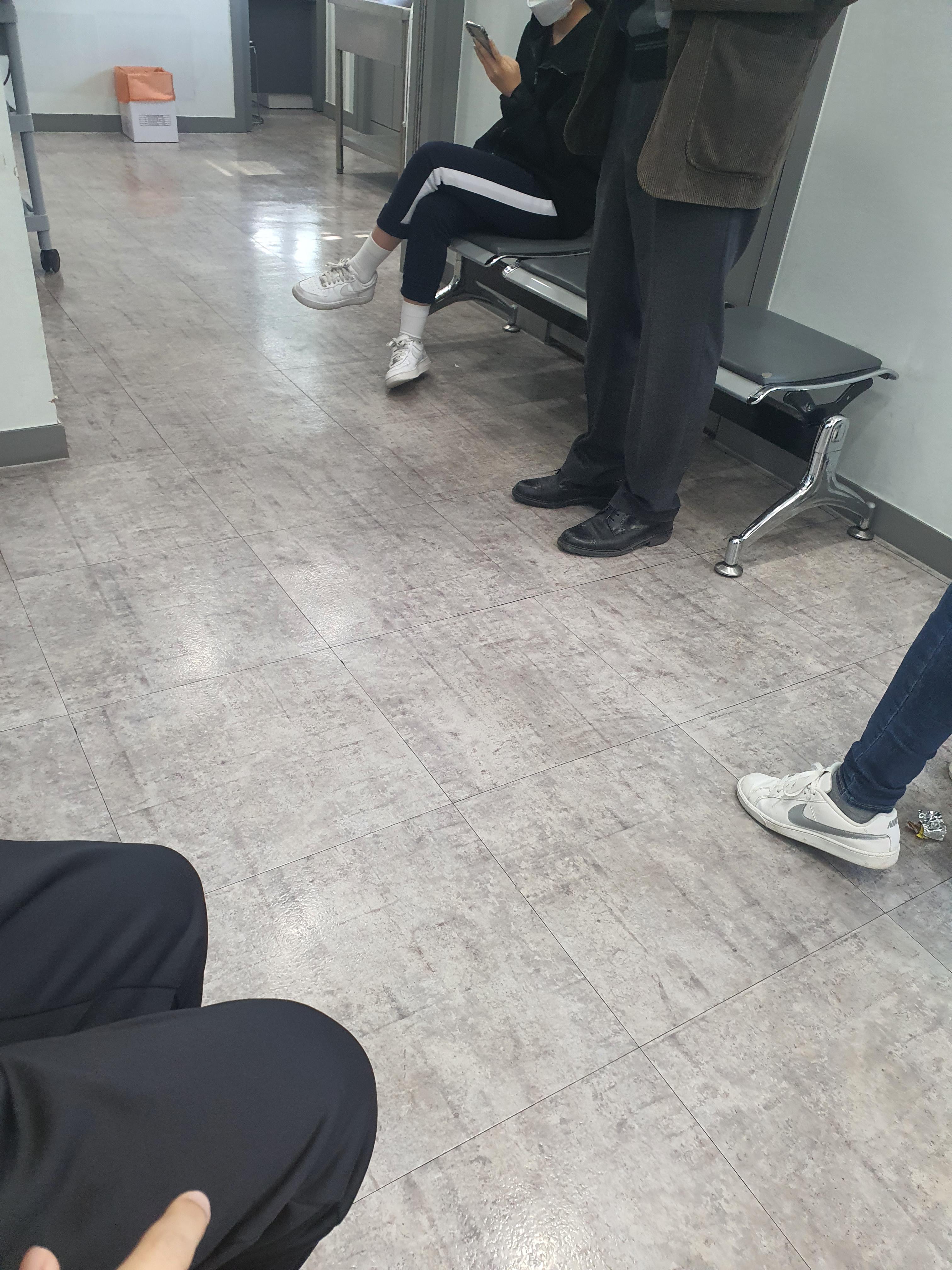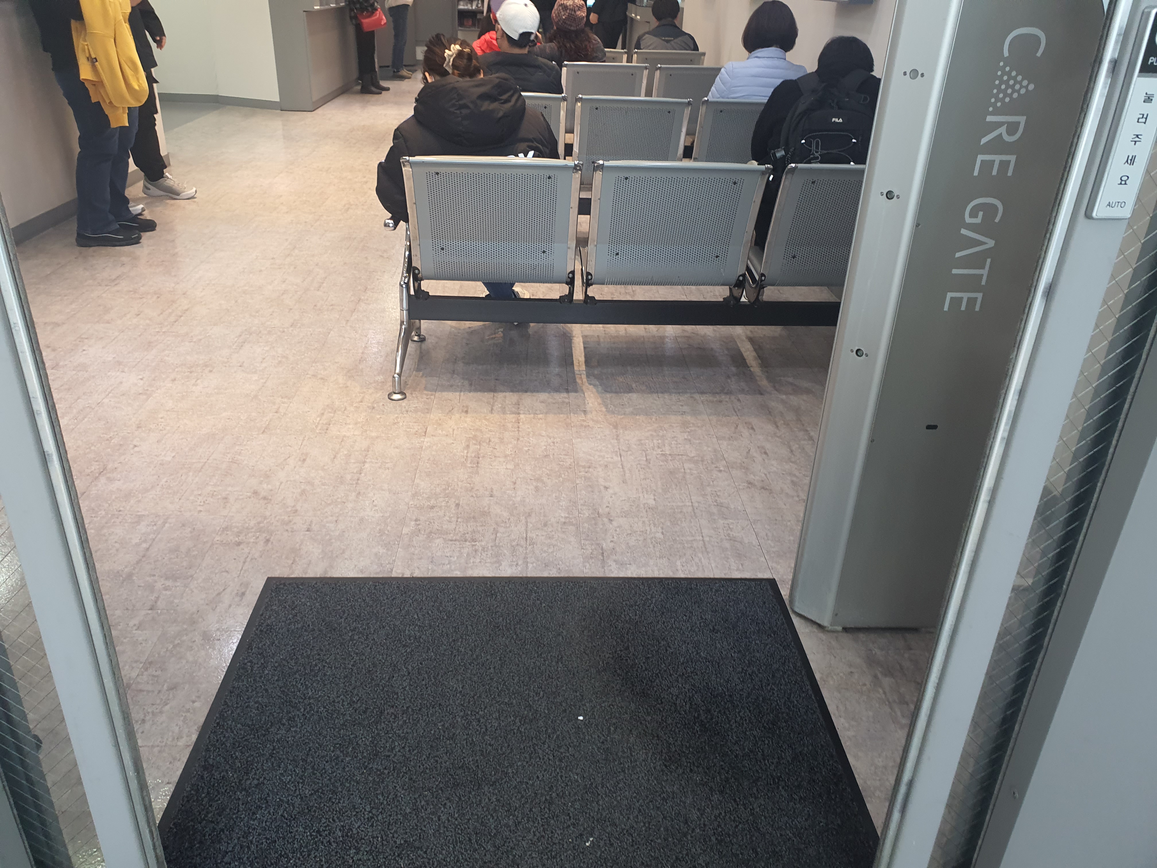 병원 첫 번째 문에 들어서면 대기실이 있어요. 꽤 넓은데 사람이 꽉 찼어요.