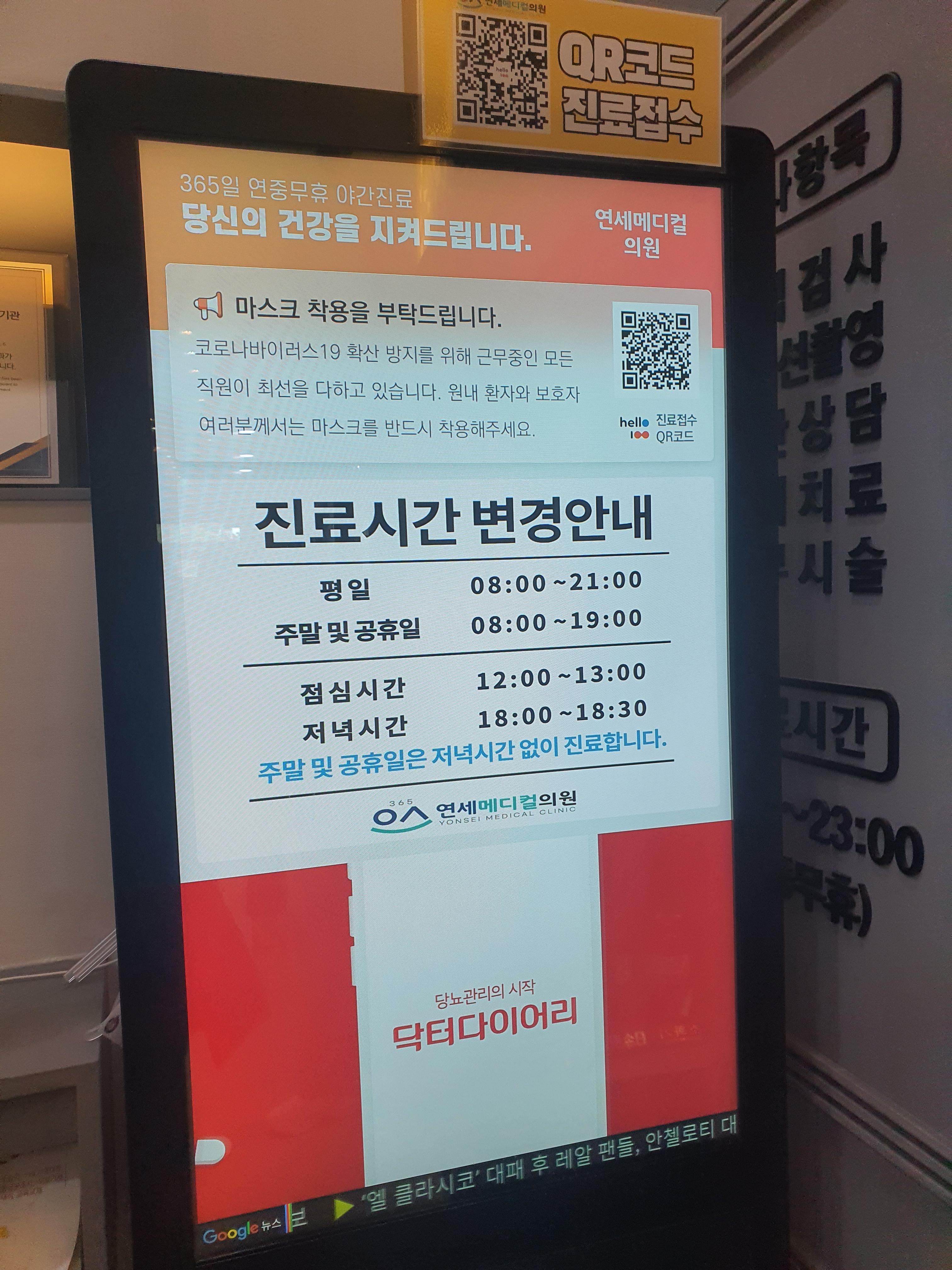 연세메디컬은 연중무휴 23시까지 진료하는 병원으로 꽤 유명했어요.