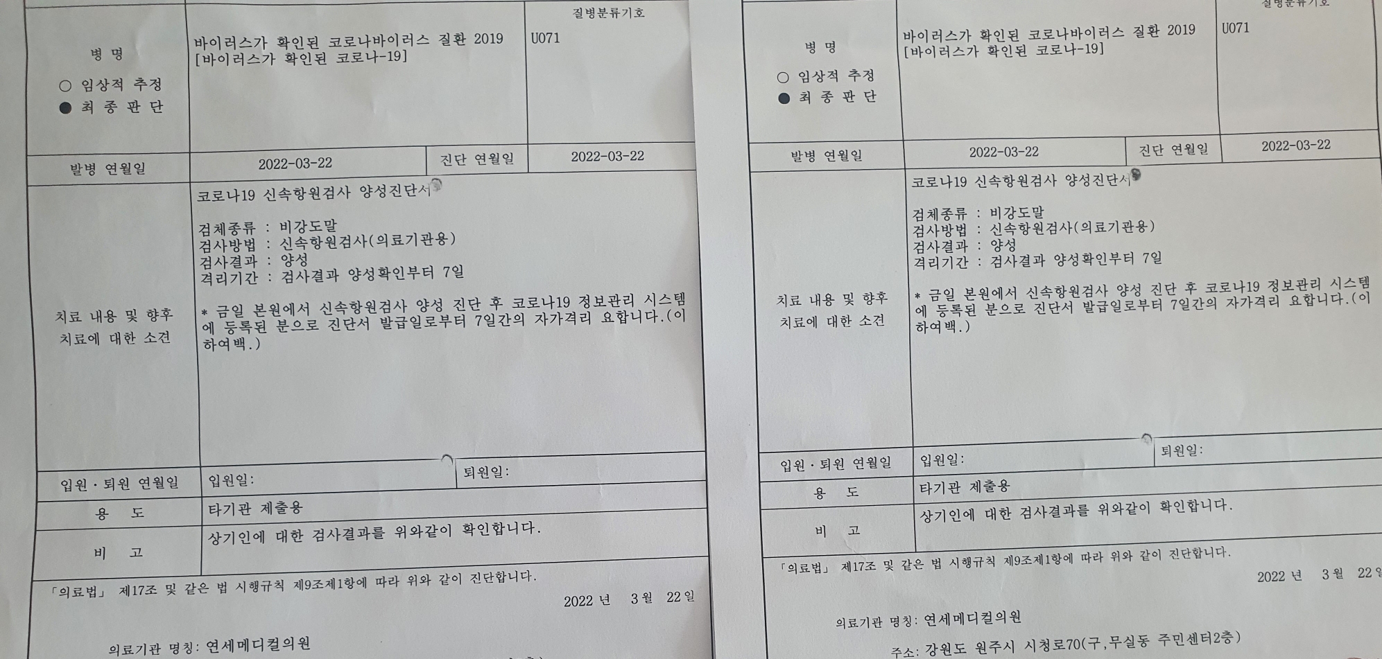 그리고 결과 설명시 양성 판정이면 진료도 봐주세요.