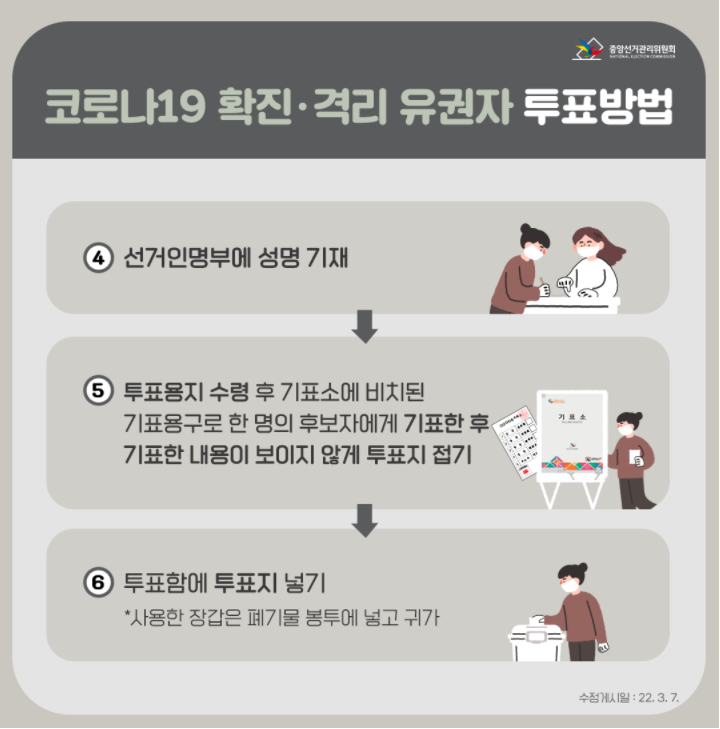 3월 9일 선거일에는 확진자도 투표지를 투표함에 직접 넣을 수 있게 됐다. 진작에 그렇게 하지.