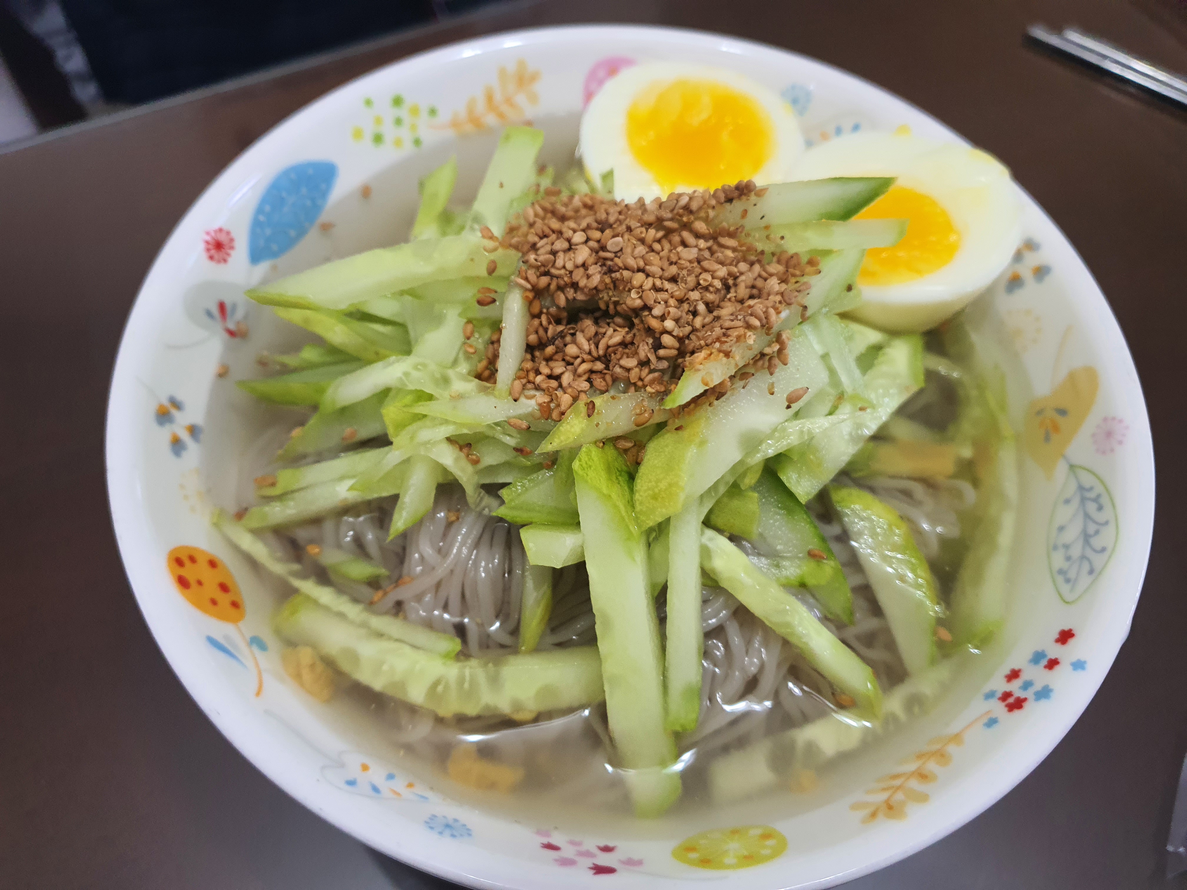 | 1. 손으로 비벼 풀어준 면을 끓는 물에 넣은 후 살살 저여주며 30초간 삶는다.(속까지 부드러운 식감은 45초) 2. 면을 건져내어 흐르는 찬물에서 끈적임이 없어질때까지 충분히 헹궈서 건진다. 4. 살짝얼린 육수를 붓는다. (취향에 다라 겨자소스 추가) 5. 채썬 오이와 초절임 무를 얹는다. |